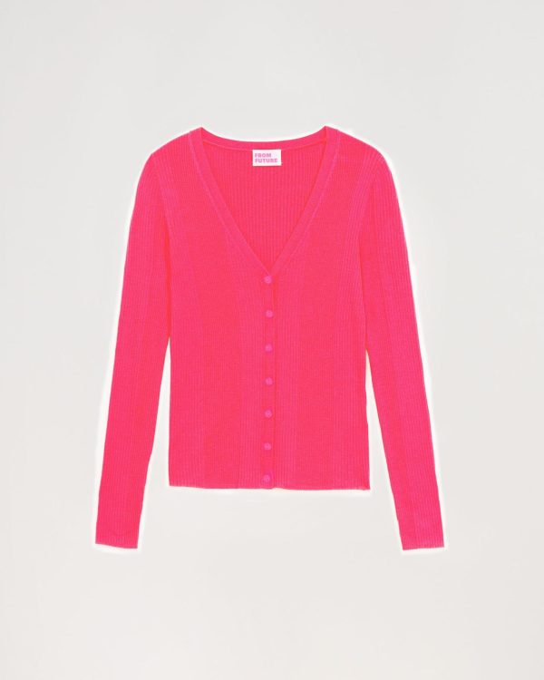FROM FUTURE Cardigans | Femme Cardigan à Côtes Ice Wool Winter Fuchsia