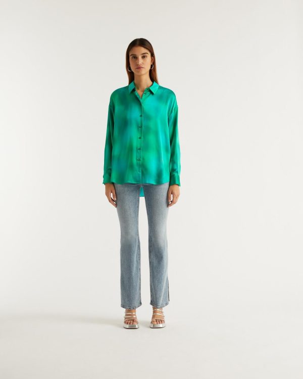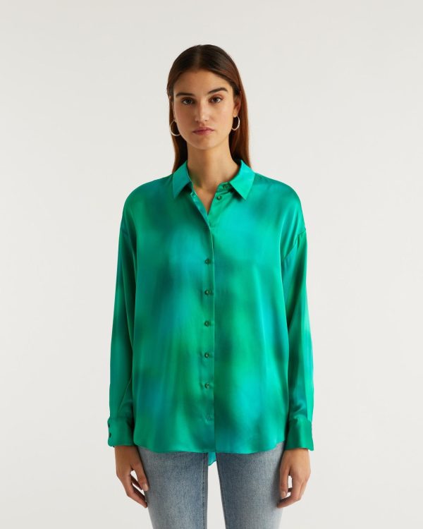 Allure et légèreté pour cette chemise en satin de soie brillant et soyeux. Munie d’un col, de manches longues et d’une fermeture boutonnée, elle révèle un imprimé aux couleurs vibrantes.