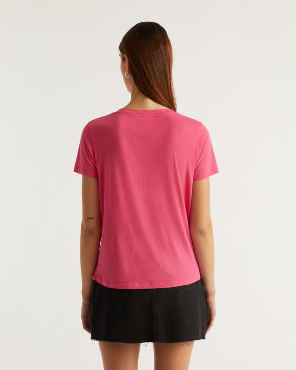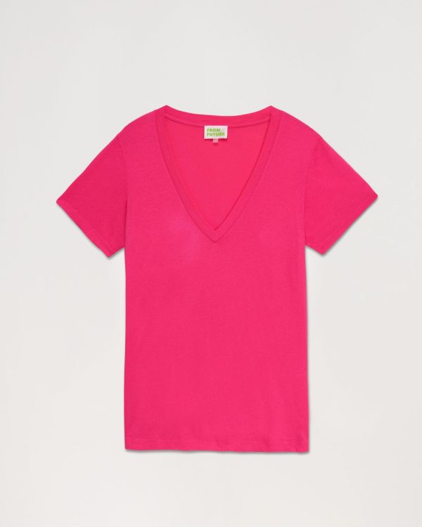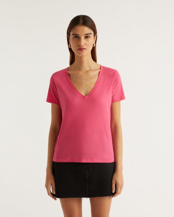 Pièce incontournable du vestiaire féminin, ce t-shirt en coton dévoile un col V et des manches courtes. Un basique à porter sans modération.