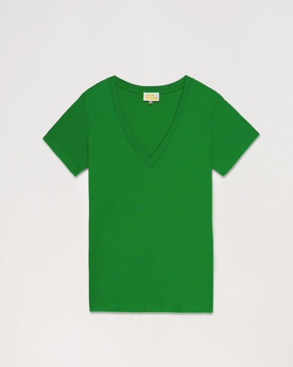 FROM FUTURE Chemises & Tops | Femme T-Shirt Col V Supima Summer Green