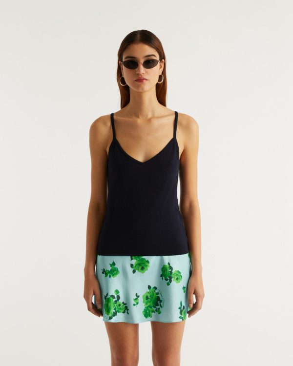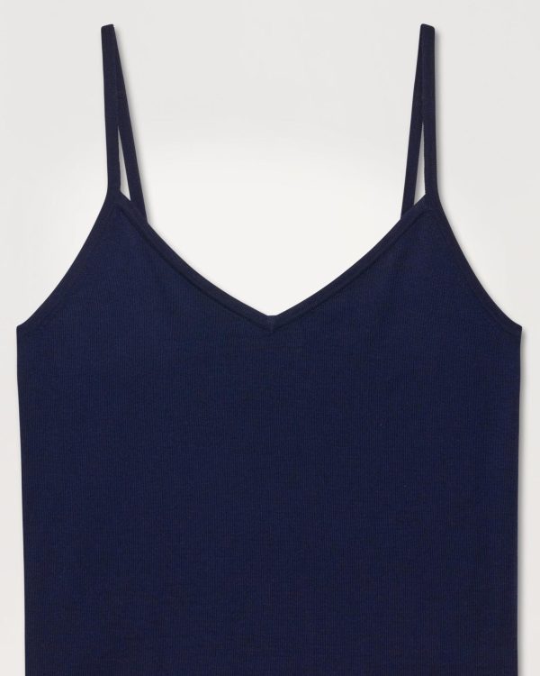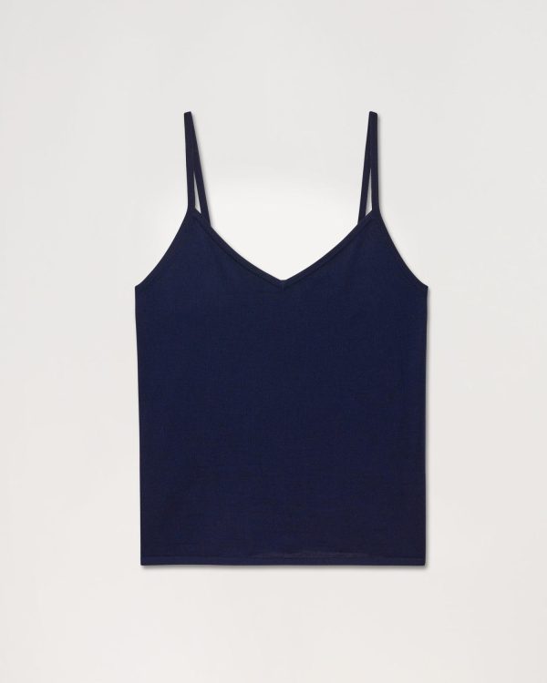 Confectionné en laine mérinos fine et aérée, ce top muni d’un col en V et de fines bretelles se porte à même la peau.