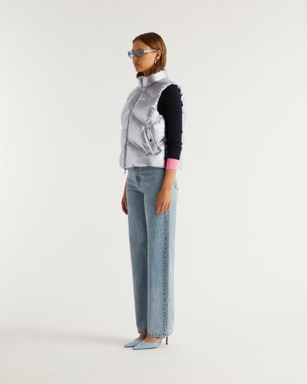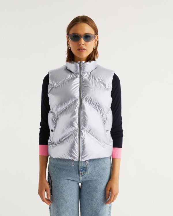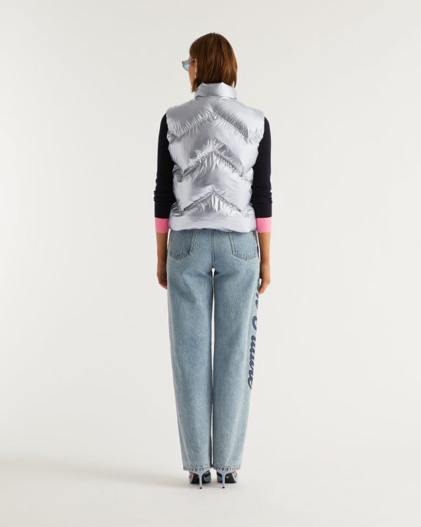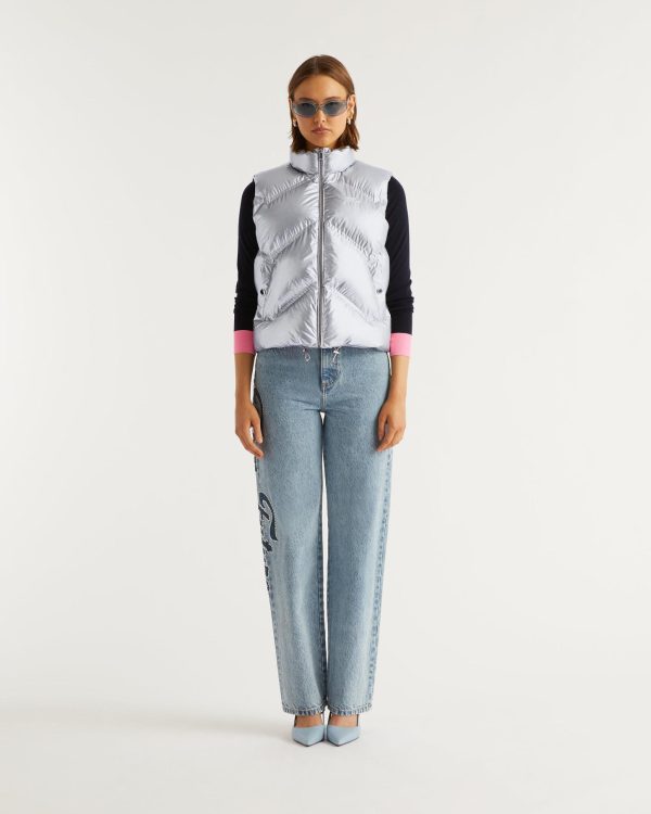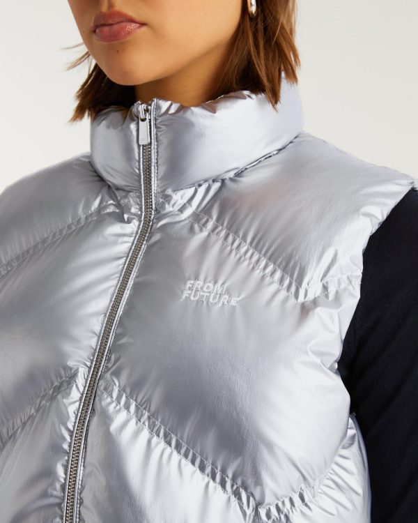 Munie d’un col montant, de poches et d’une fermeture zippée, cette doudoune sans manches matelassée affiche une broderie « FROM FUTURE » sur la poitrine.