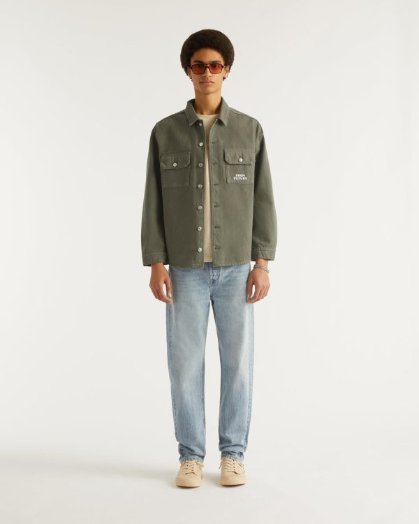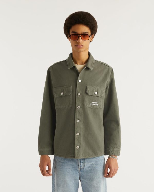 Contrastée d’une broderie « From Future », cette veste surchemise en coton est munie de manches longues, de poches à rabat et de boutons.