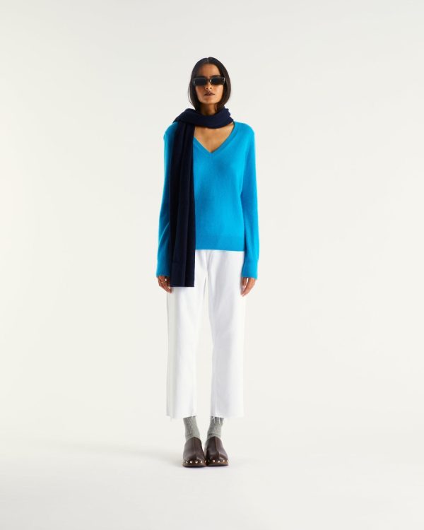 Enroulez-vous dans ce que le cachemire fait de mieux : notre écharpe en maille deux fils ultra légère, ultra chaude, et ultra stylée. Disponible dans une kyrielle de couleurs tendances. Nous, hâte de l’hiver ? Oui.