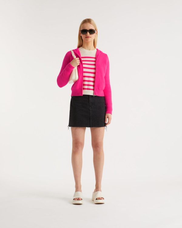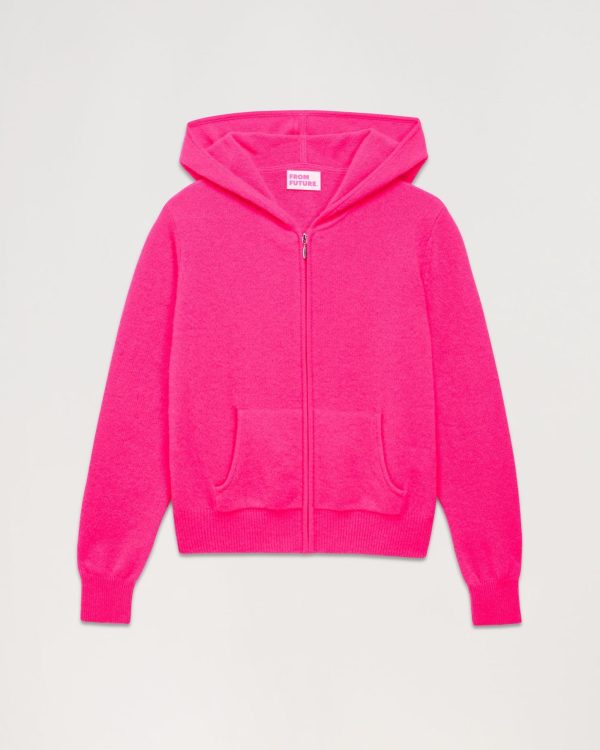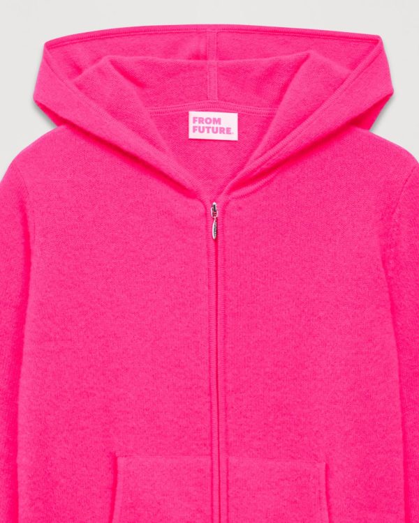 Un essentiel du vestiaire FROM FUTURE : ce hoodie court zippé en maille douce 100% cachemire dévoile des manches longues et deux poches.