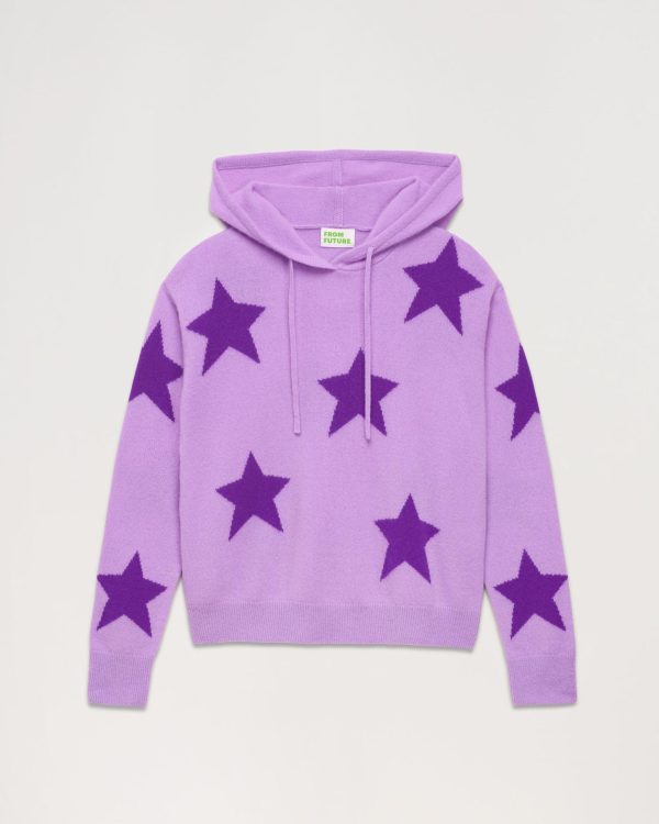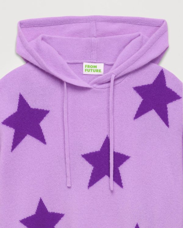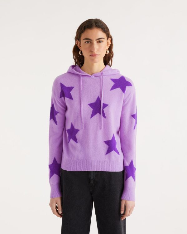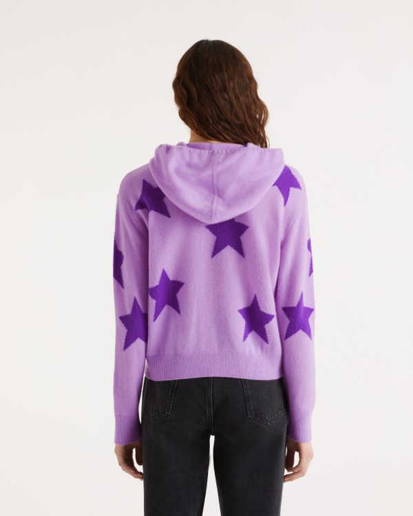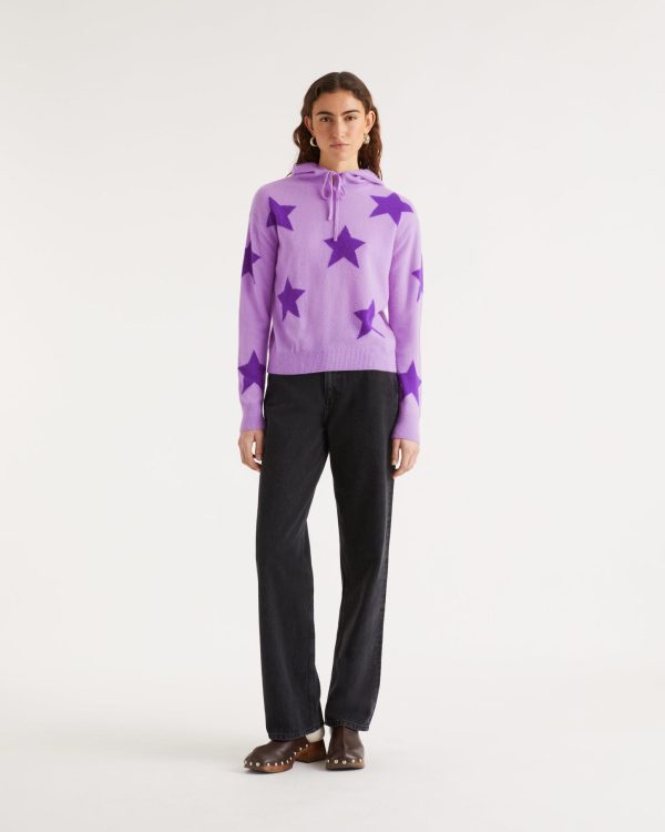 Une maille 100% cachemire pour ce hoodie court à manches longues constellé d’un jacquard étoiles en all-over.