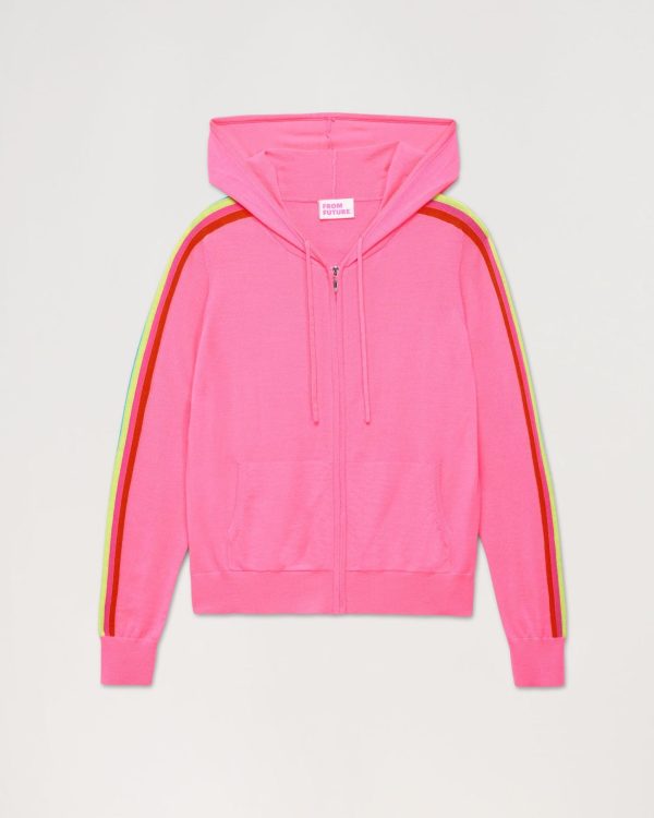 FROM FUTURE Hoodies | Femme Pull Hoodie Zippe Bande Multicolore Holiday Pink