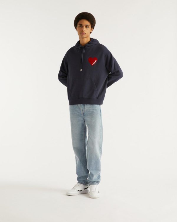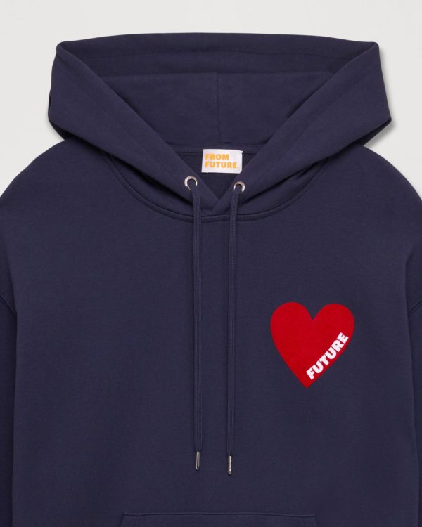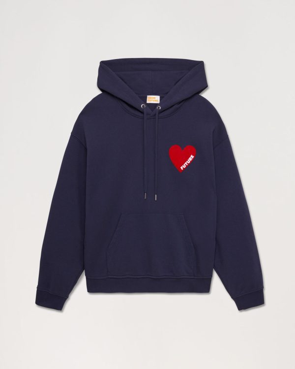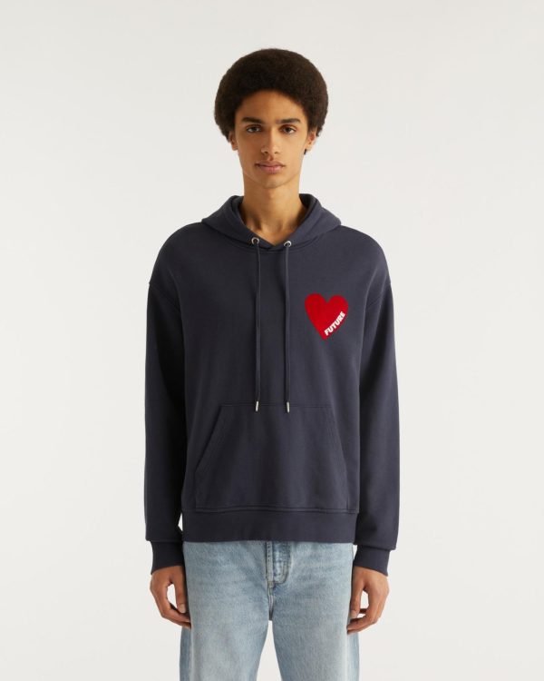 Muni d’une poche avant, de manches longues et d’une capuche à cordon de serrage, ce sweatshirt oversize en molleton dévoile un cœur rouge « FUTURE » sur la poitrine.