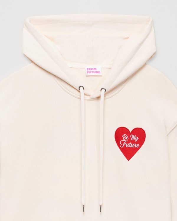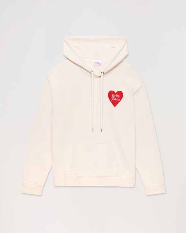 Cool et casual, ce hoodie oversize à capuche muni de manches longues et d’une poche avant dévoile une broderie coeur à la poitrine, ornée de la déclaration : By My Future.