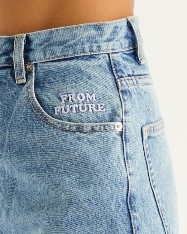 Le jean parfait. Détail en broderie « From Future » semi-caché sur la poche gauche. Jambes droites pour allonger la silhouette sans trop mouler. Un intemporel que vous porterez toute l’année.