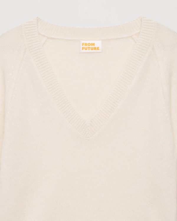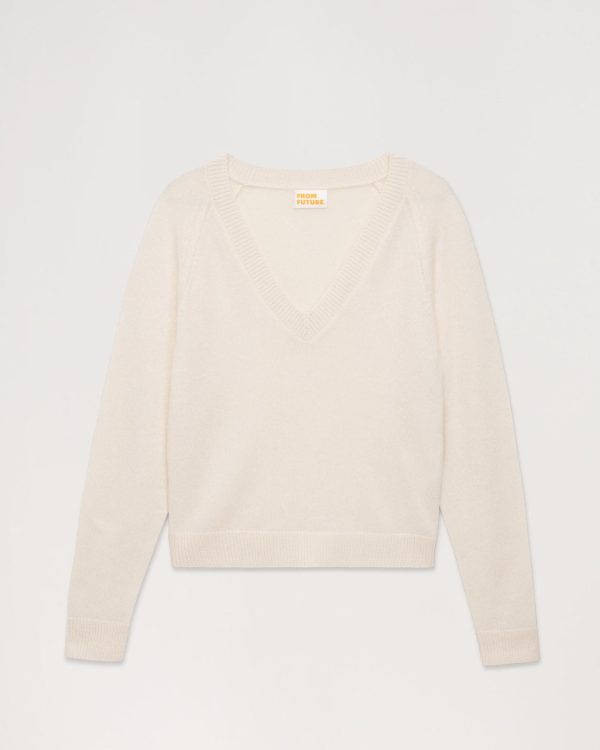 FROM FUTURE Pulls En Cachemire | Femme Pull Col V Manches Raglan Light Écru