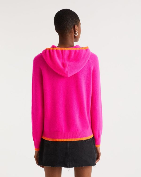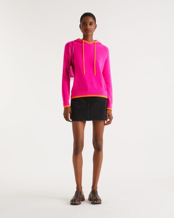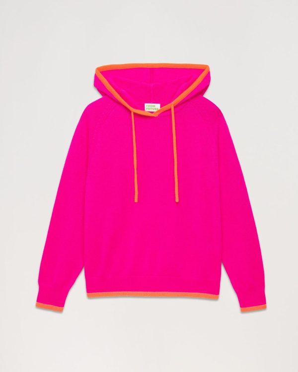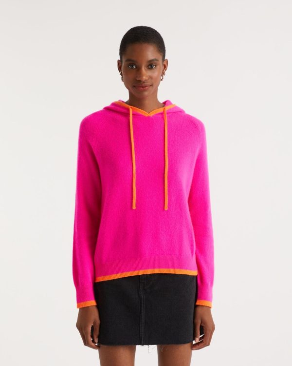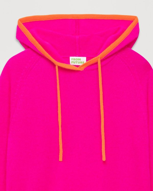 FROM FUTURE Pulls En Cachemire | Femme Pull Hoodie Oversize Liserets Contrastes Flash Pink