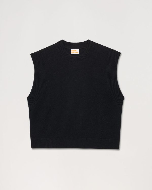 FROM FUTURE Pulls En Cachemire | Femme Pull Sans Manche Col Rond Uni Light Noir