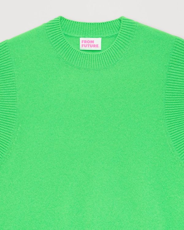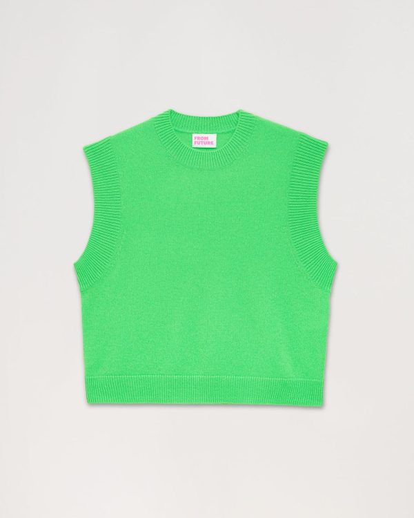 FROM FUTURE Pulls En Cachemire | Femme Pull Sans Manche Col Rond Uni Light Vert Fluo
