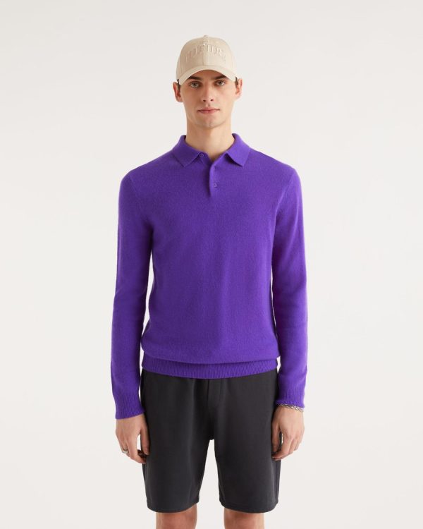FROM FUTURE Pulls En Cachemire | Homme Pull Col Polo Uni Light Violet Fluo