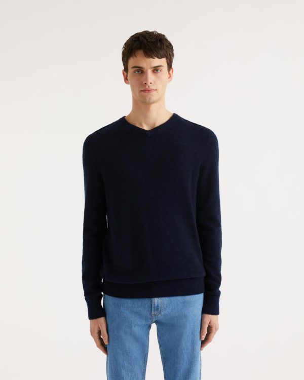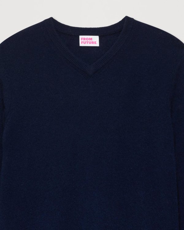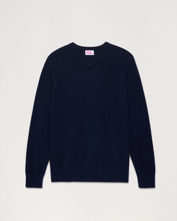 FROM FUTURE Pulls En Cachemire | Homme Pull Col V Uni Light Navy