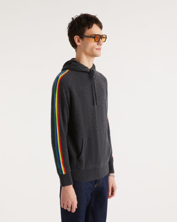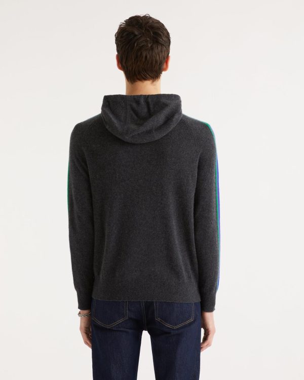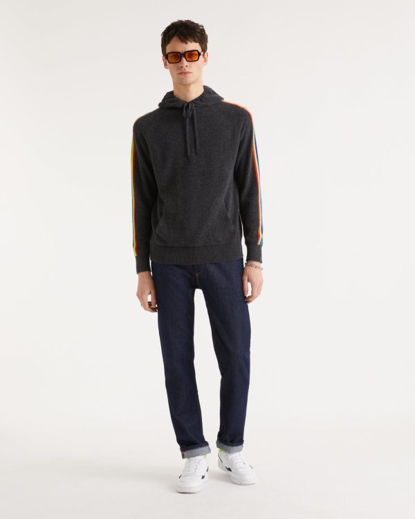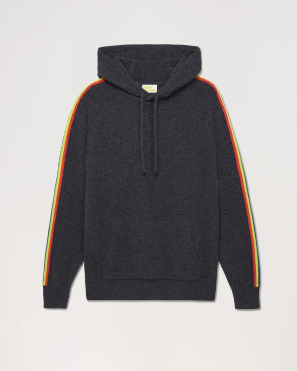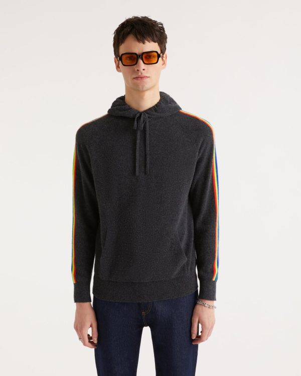 Confort et douceur pour ce hoodie oversize en maille 100% cachemire affichant des bandes contrastées aux manches.