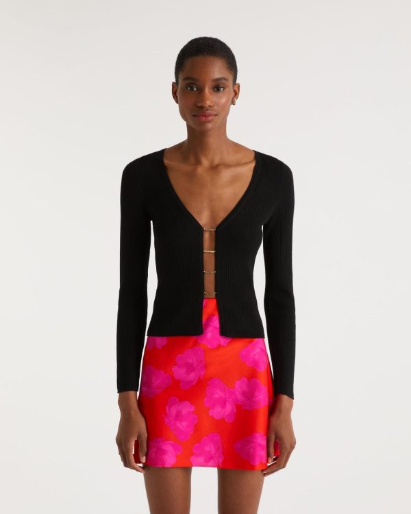 FROM FUTURE Pulls En Laine Mérinos | Femme Pull Cardigan à Côtes Bijoux Future Dores Noir