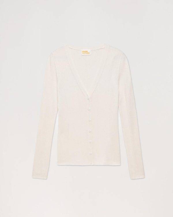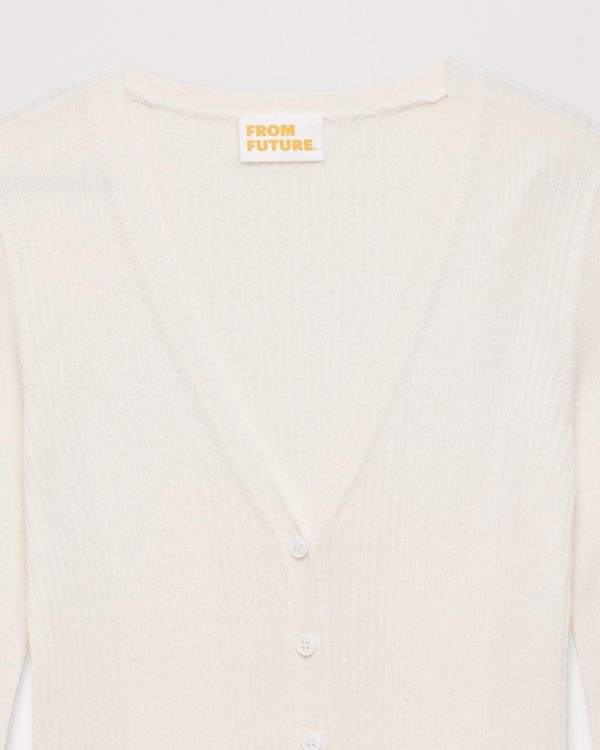 FROM FUTURE Pulls En Laine Mérinos | Femme Pull Cardigan A Cotes Ecru