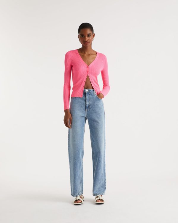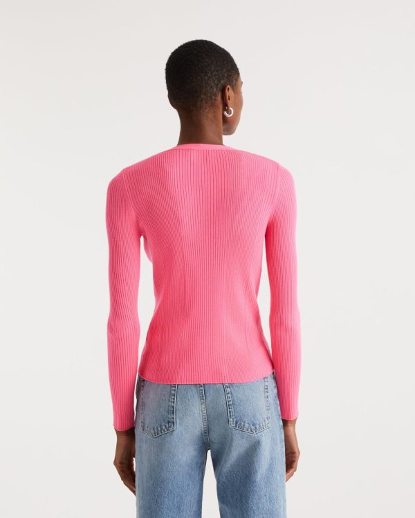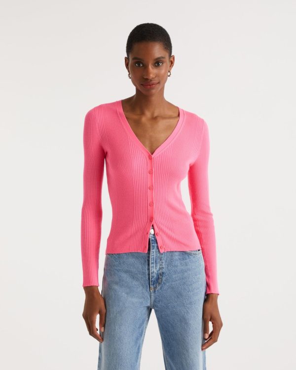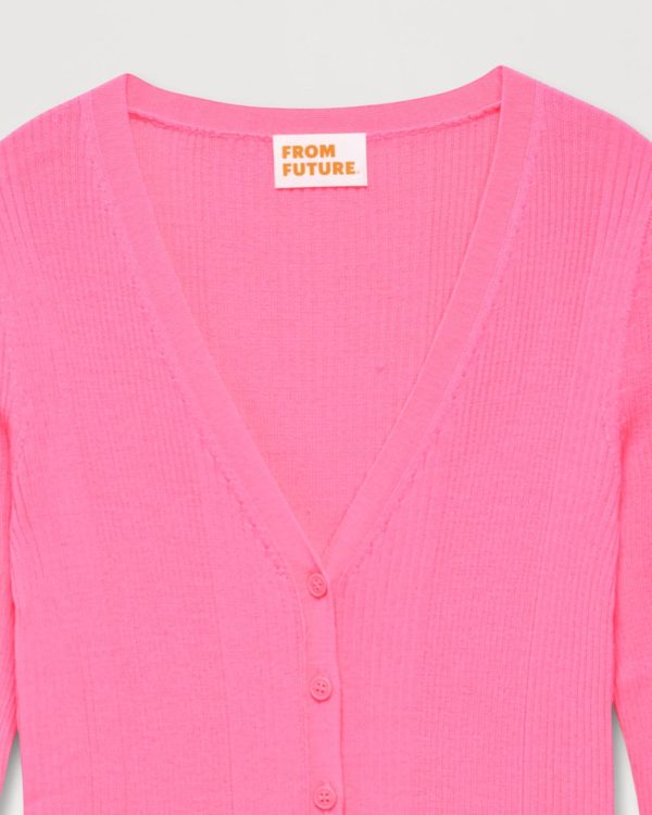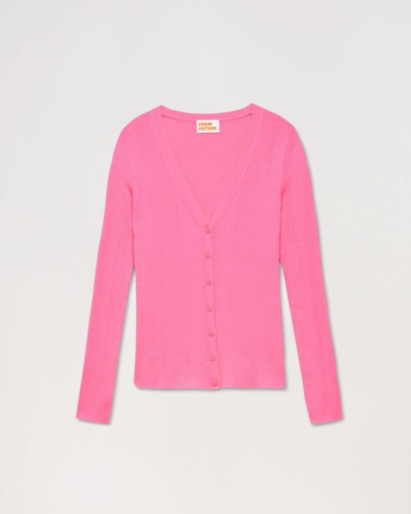 FROM FUTURE Pulls En Laine Mérinos | Femme Pull Cardigan A Cotes Holiday Pink
