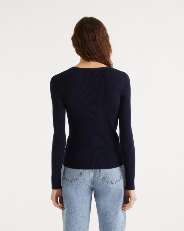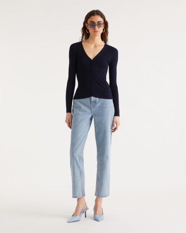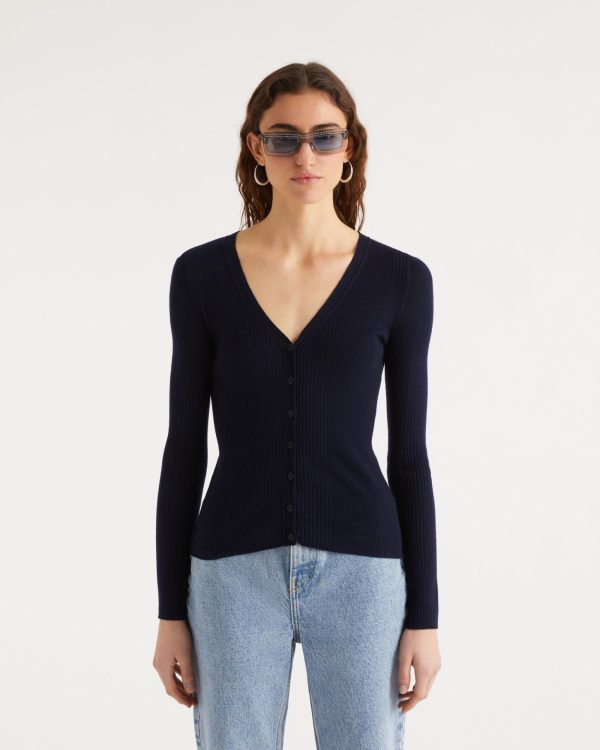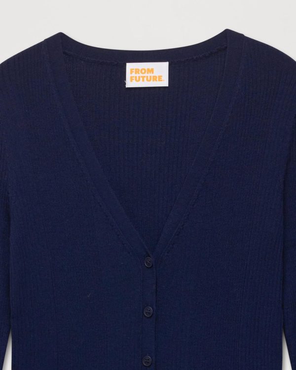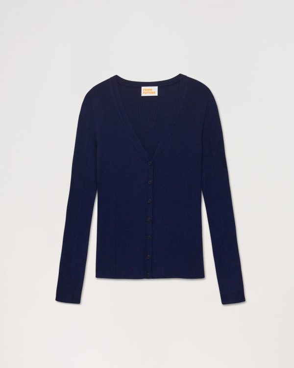 FROM FUTURE Pulls En Laine Mérinos | Femme Pull Cardigan A Cotes Navy