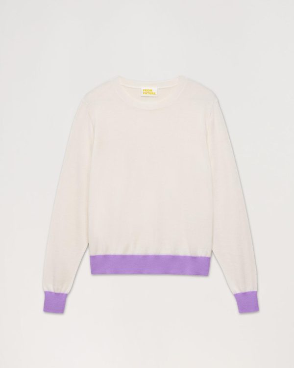 Muni d’un col rond et de manches longues, ce pull court en laine mérinos chaude, douce et aérée affiche des bords contrastés.