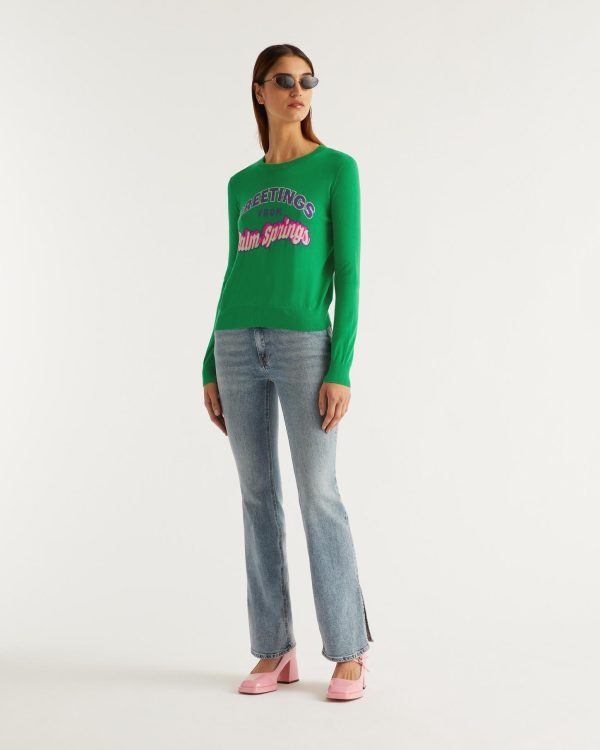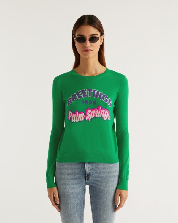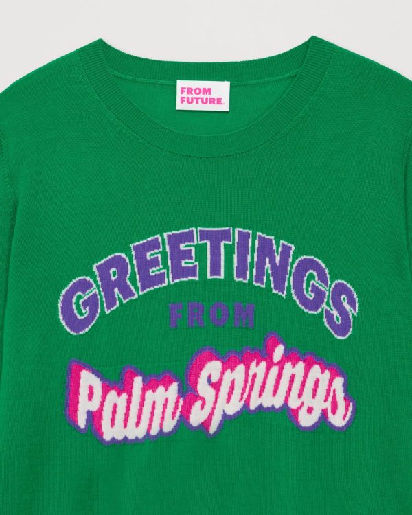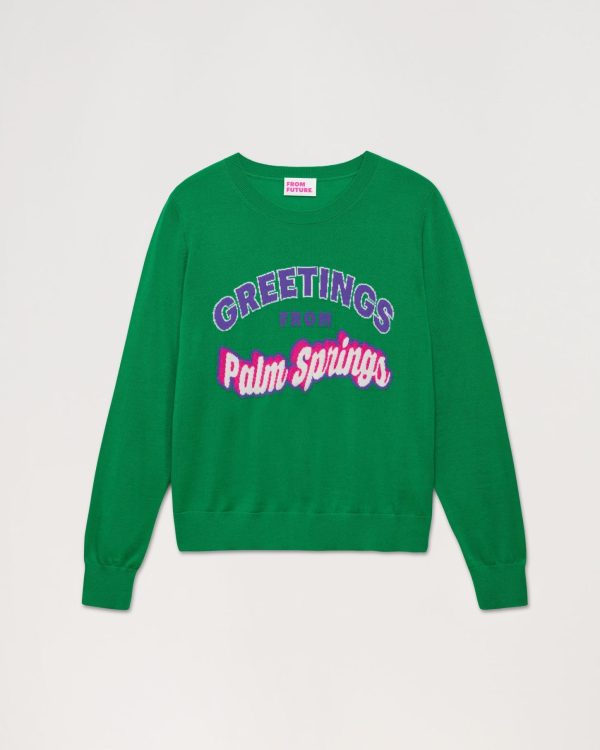 FROM FUTURE Pulls En Laine Mérinos | Femme Pull Col Rond Greeting From Palm Springs Summer Green