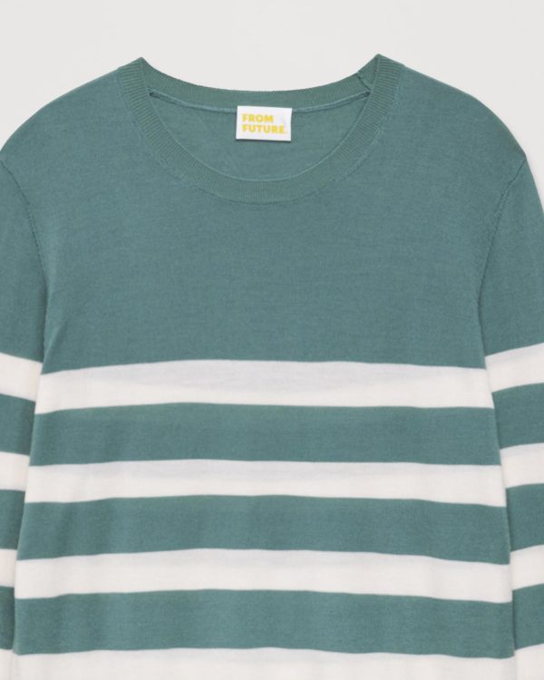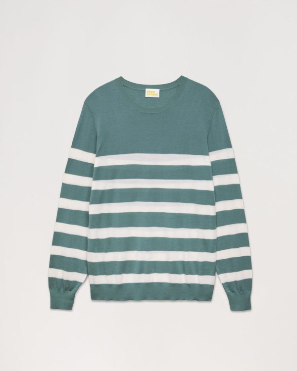 Orné de rayures contrastées, ce pull marinière en laine mérinos chaude, légère et aérée est muni d’un col rond et de manches longues.