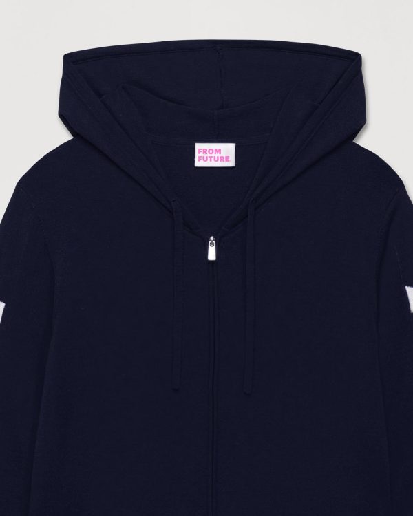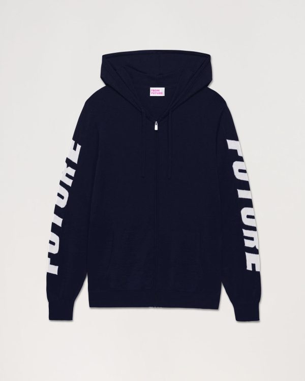 FROM FUTURE Pulls En Laine Mérinos | Homme Pull Hoodie Zippe A Poches Manches Future Navy