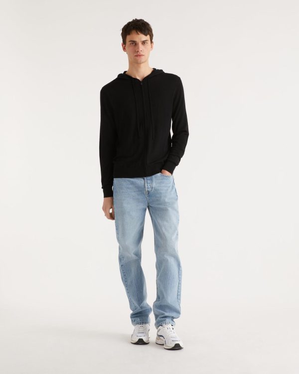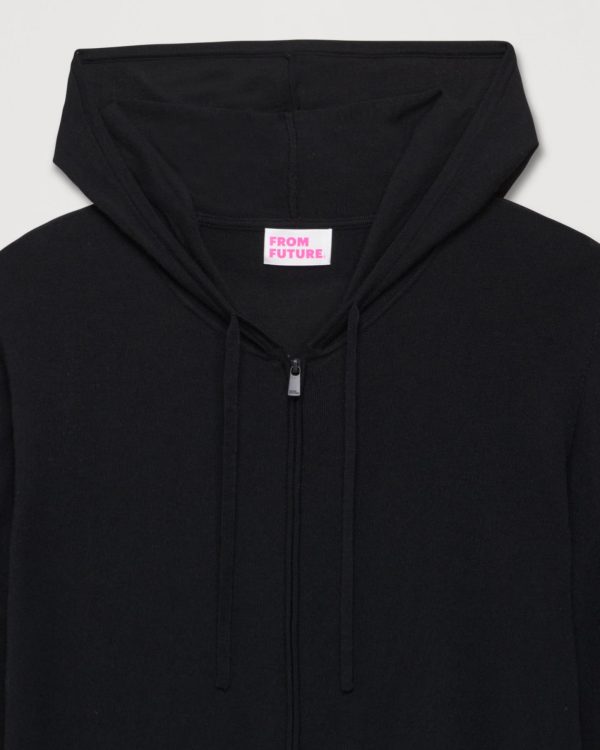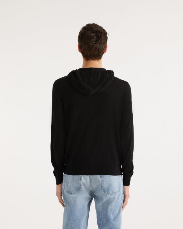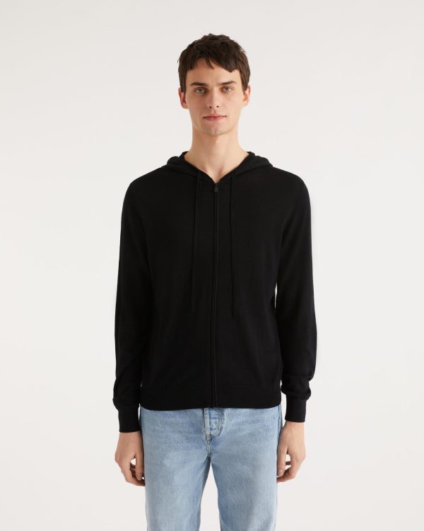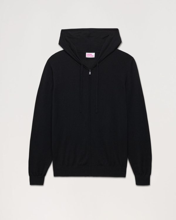 FROM FUTURE Pulls En Laine Mérinos | Homme Pull Hoodie Zippe Uni Noir