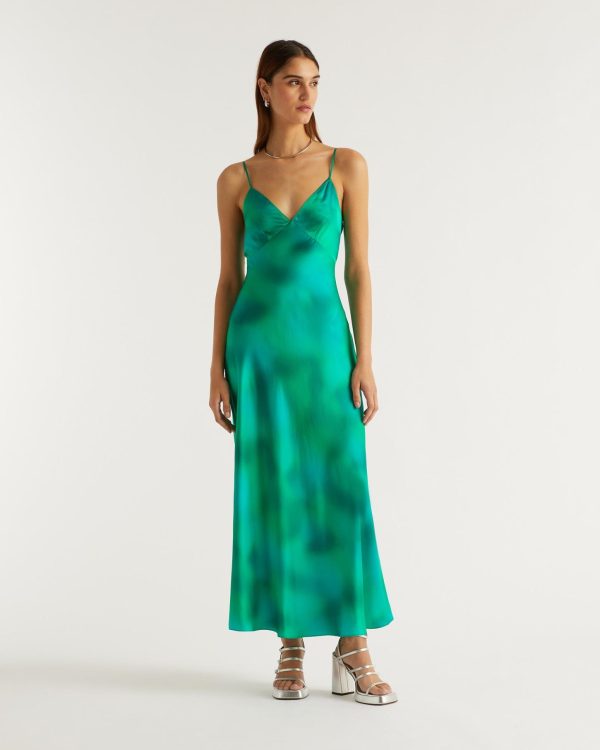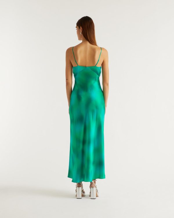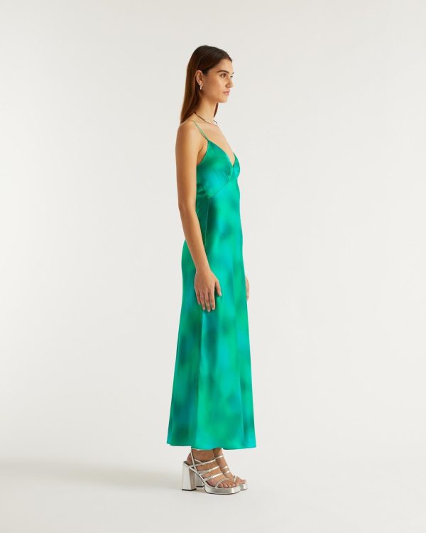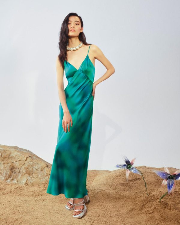 Allure et légèreté pour la robe longue Angelina. Sa matière satin de soie est fluide et brillante. Munie d’un décolleté en V et de fines bretelles, elle dévoile un tombé évasé.
